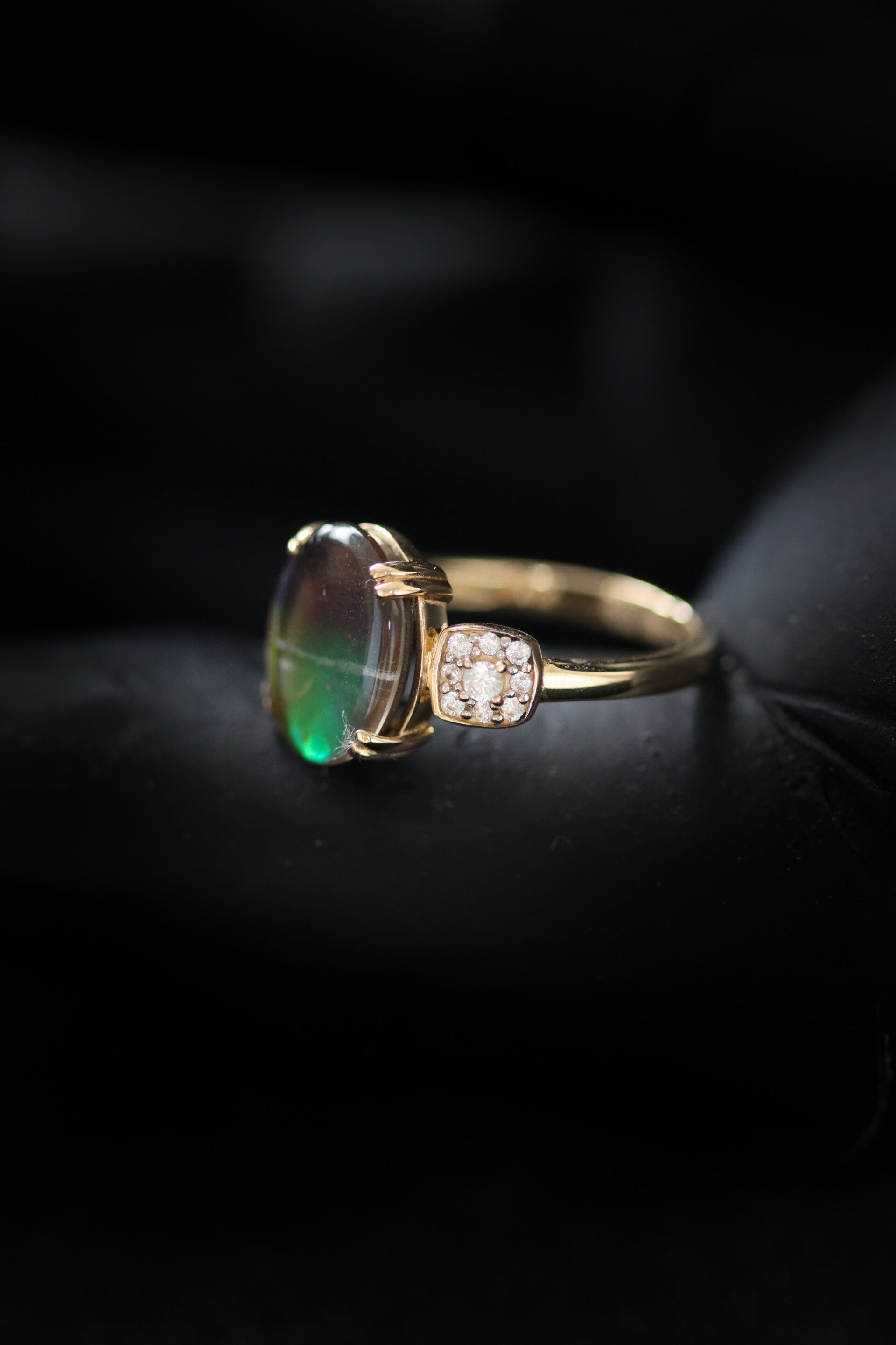 Deze prachtige pre-loved 9k ring met een zeldzame ammoliet is niet alleen een uniek sieraad, maar heeft ook een fascinerende herkomst. Ammoliet, afkomstig van geopaliseerde fossielen van ammonieten, wordt al eeuwenlang beschouwd als een gelukssteen die helpt bij transformatie en spirituele groei.