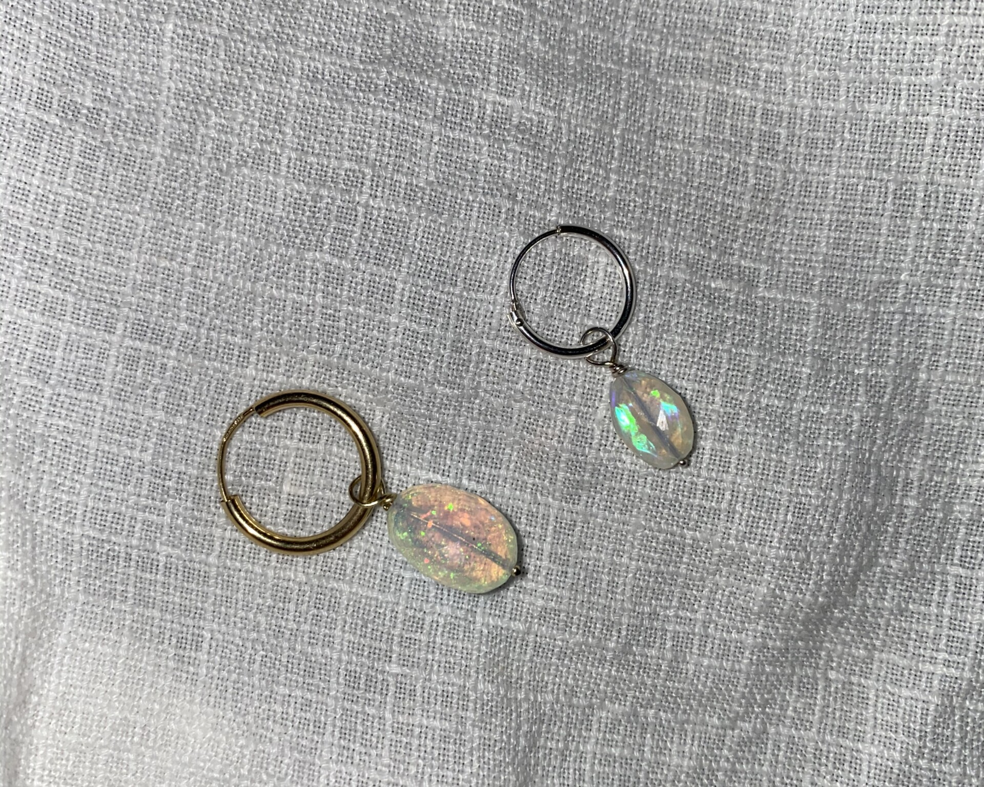 14k gouden bedel en creool met een prachtige, vurige opaal.