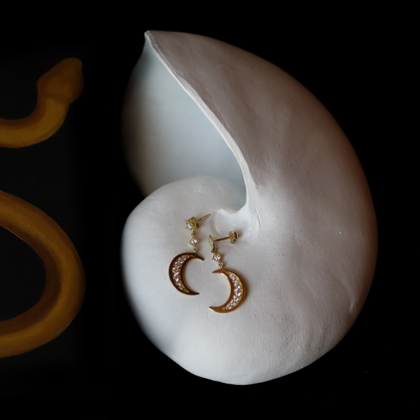 9k oorhangers in de vorm van manen, bezet met zirconia.