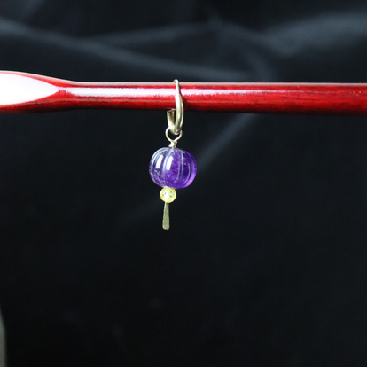Deze prachtige, kleurrijke bedel is handgemaakt van hoogwaardig, duurzaam 14k goud. Een pompoen-vormige amethist uit Idar Oberstein is gecombineerd met een citrien uit Rusland.